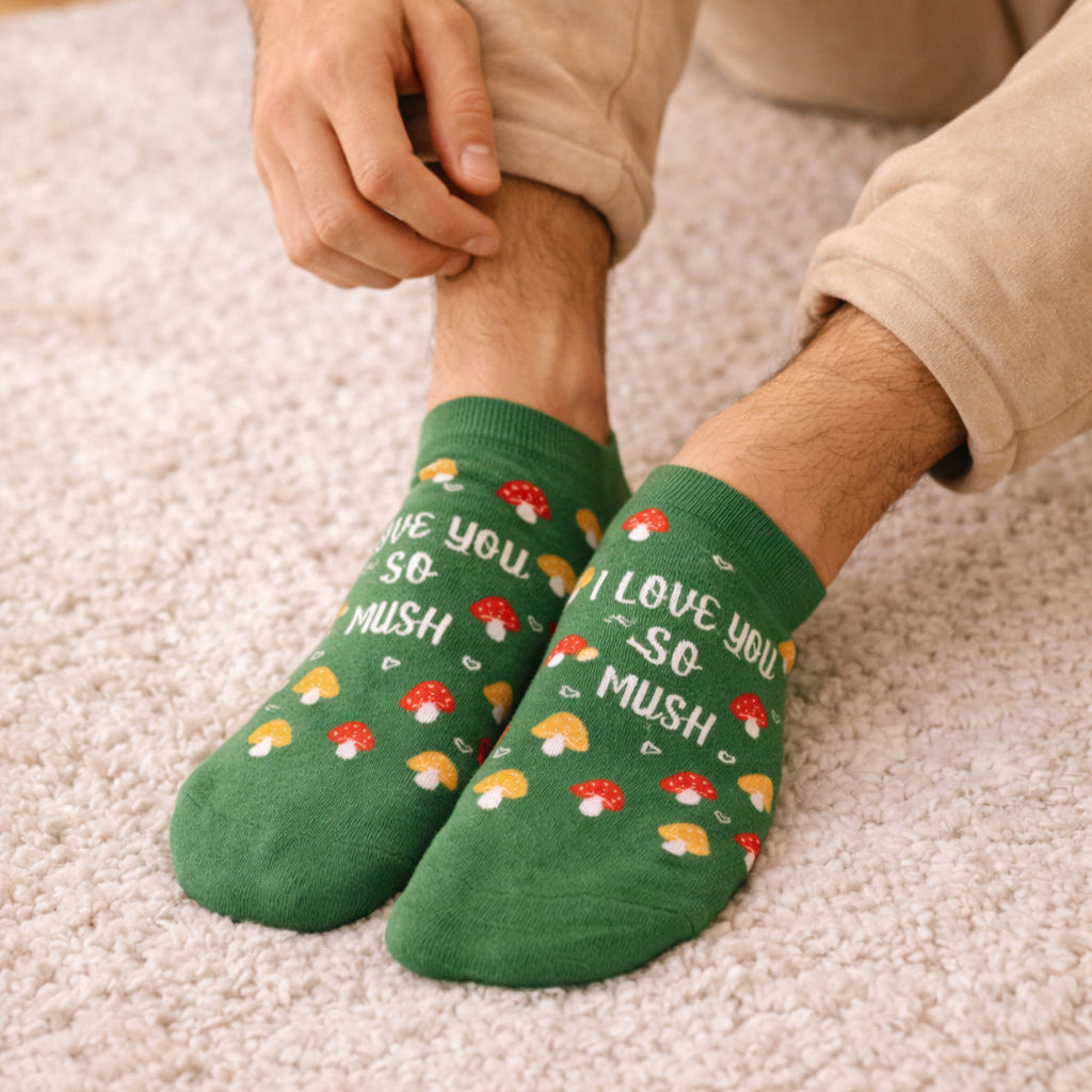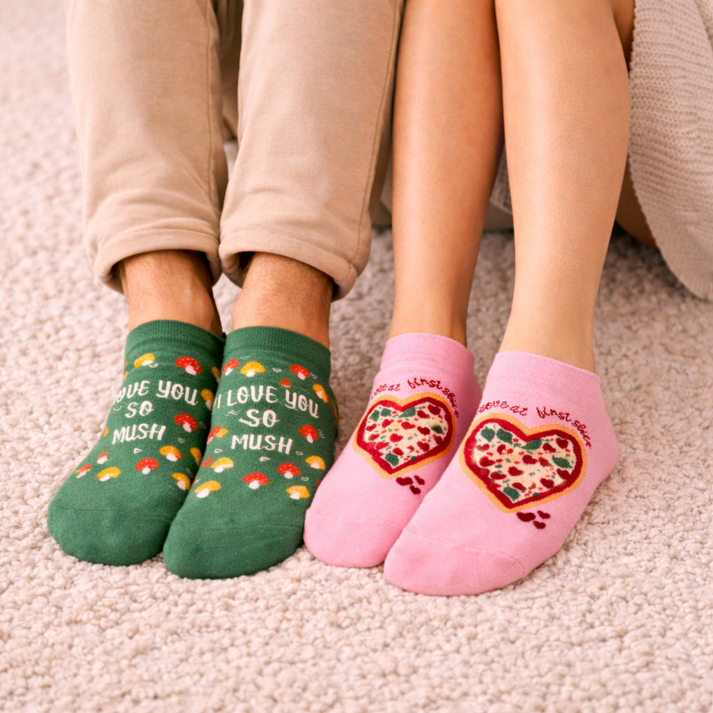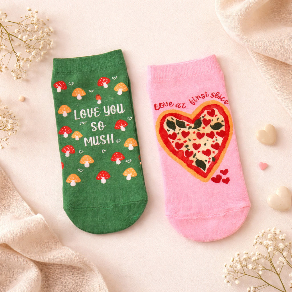 These Valentine-special Mushroom Pizza ankle socks celebrate love at first slice with cute mushrooms, heart-filled pizza and playful colours. Made with soft, breathable combed cotton, they’re comfy enough for everyday wear and quirky enough to make your Valentine smile.