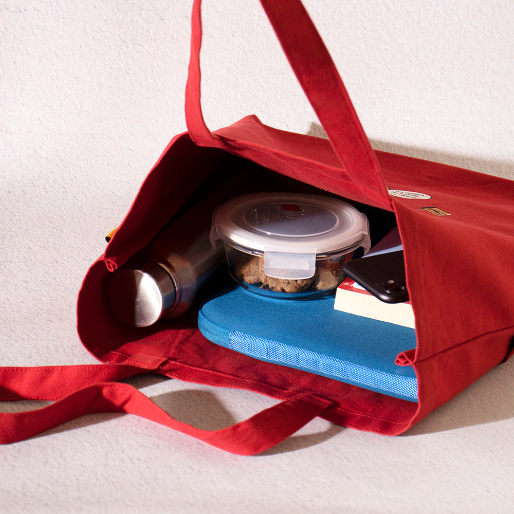 Carry your laptop, water bottle, book, or a box full of cookies, store the world in our roomy tote bag because these bags are more durable than you think. The sturdy design holds a lot of stuff in it without tearing down.